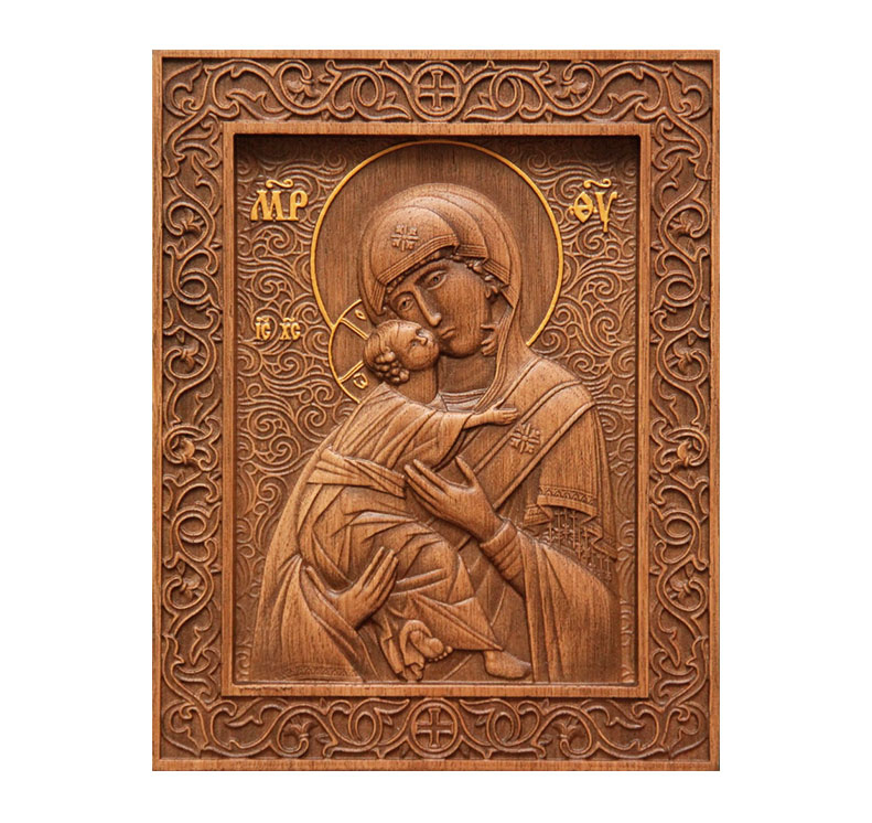 Владимирская икона Божией Матери, изготовленная из натурального дерева. Православная икона ручной работы выполнена с использованием технологии художественной 3D фрезеровки по дереву. Икона Божией Матери в христианском мире является одной из самых почитаемых и считается, что она защищает и исцеляет от недугов. Оригинальный, неповторимый и престижный подарок. С обратной стороны иконы возможна гравировка молитвы.