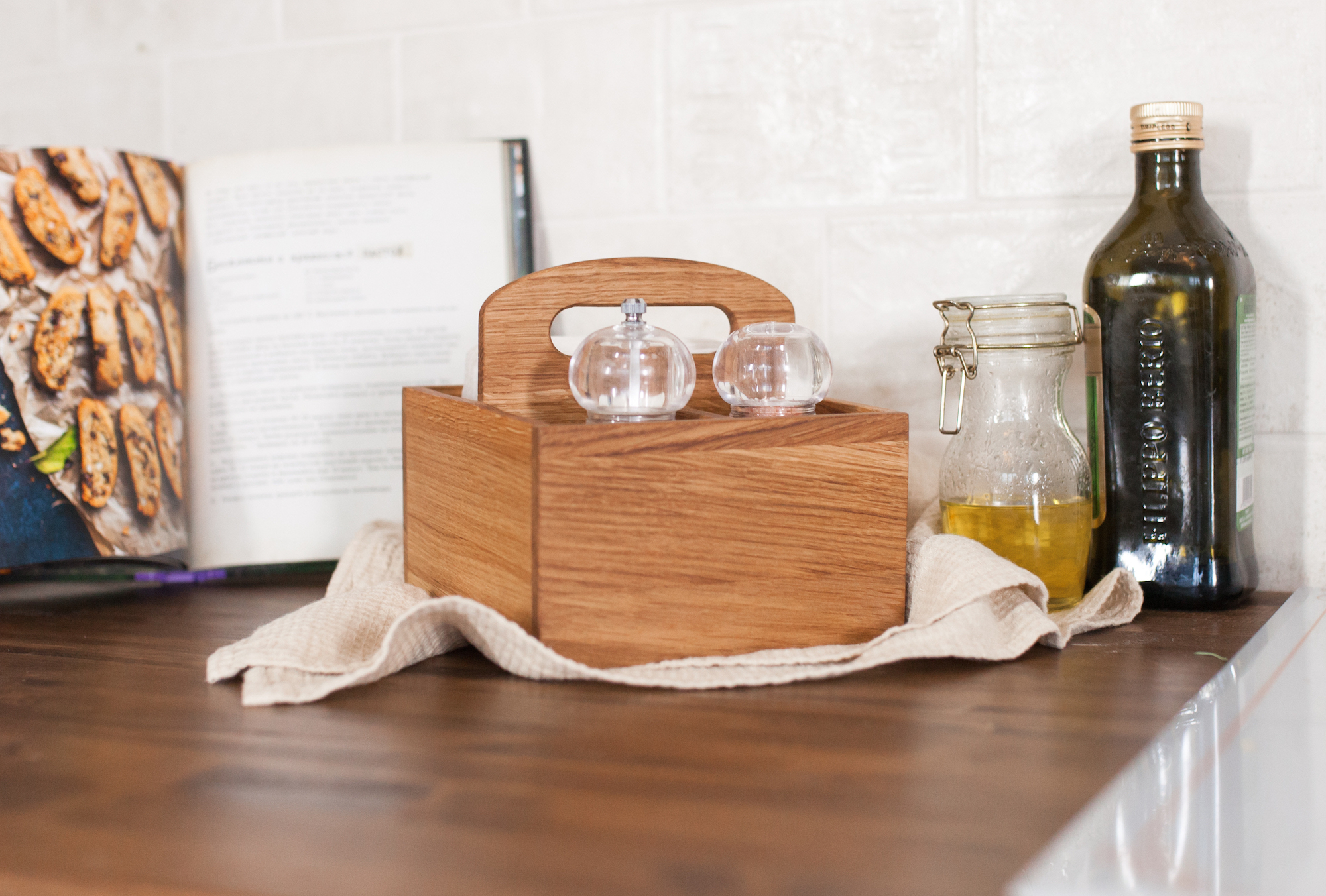 Элегантная деревянная салфетница ручной работы, выполненная из красивой и ценной породы дерева - дуба, а значит прослужит своим хозяевам долгие годы. Покрытие салфетницы - масловоск. Высококачественное покрытие не только хорошо защищает древесину, но и позволяет придать изделию очень интересный цвет, подчеркивающий текстуру дерева. В подставке предусмотрено отделение для салфеток, а также дополнительные секции, которые могут использоваться для хранения столовых приборов, чайных пакетиков, баночек и коробок с приправами, бутылочек с маслами, банки для соли и сахара, всевозможных мелочей.Варианты цвета покрытия: натуральный, дуб, венге, вишня.