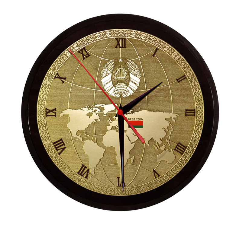 · В более строгих дизайнерских вариациях представлены настенные часы в деревянном корпусе с государственной символикой или картой страны. Такой презент займет достойное место в кабинете руководителя или станет приятным подарком для иностранного гостя.